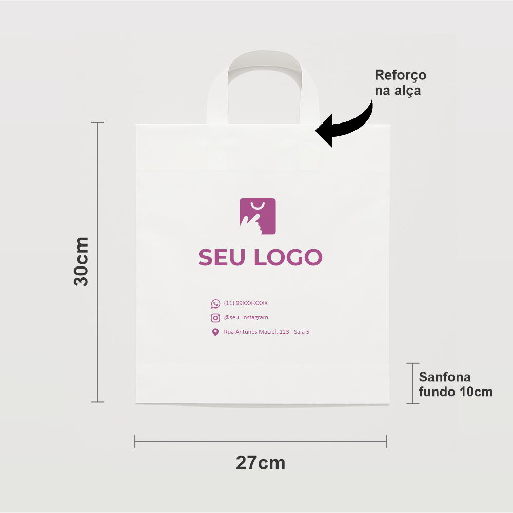 Com alça fita reforçada e sanfona de 10 cm no fundo, essa sacola plástica personalizada garante mais conforto no transporte e proteção dos produtos. É perfeita para boutiques, lojas de roupas, calçados e presentes, proporcionando uma apresentação elegante e profissional no momento da entrega.