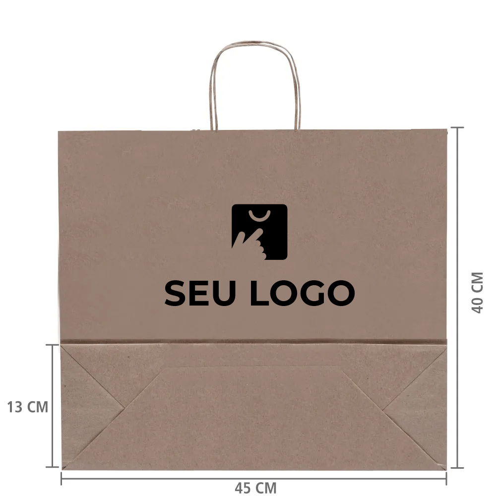 Sacola Kraft Personalizada 40x45x13 é a escolha ideal para lojas que desejam uma embalagem prática, resistente e ao mesmo tempo sustentável. Fabricada em papel kraft de alta qualidade, transmite elegância e reforça o compromisso da sua marca com o meio ambiente.